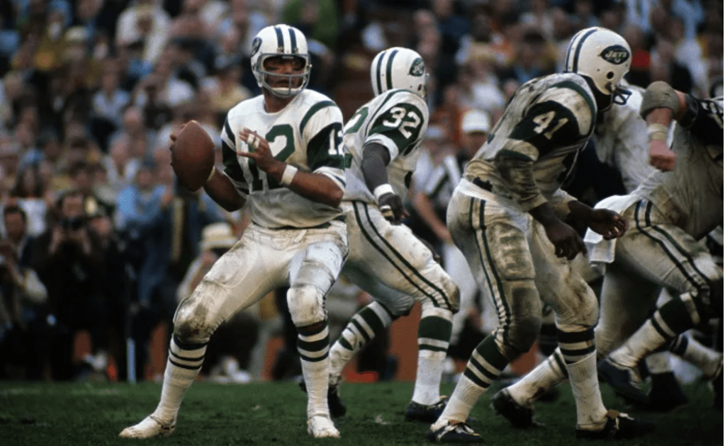 The Jets were led by a kid who’d played ball at Alabama for Bear Bryant–Forrest Gump’s coach– but had left all that behind for the Bright Lights and Big City. Willie Joe Namath liked New York City, liked to party.