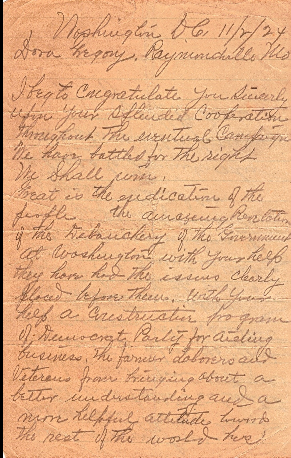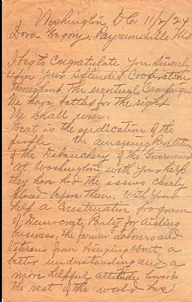 Nominee Davis wrote this thank-you note just before losing the general election. And so the debauchery of government continued, although certainly not on the scale of recent years.