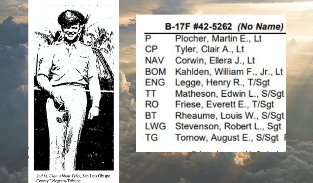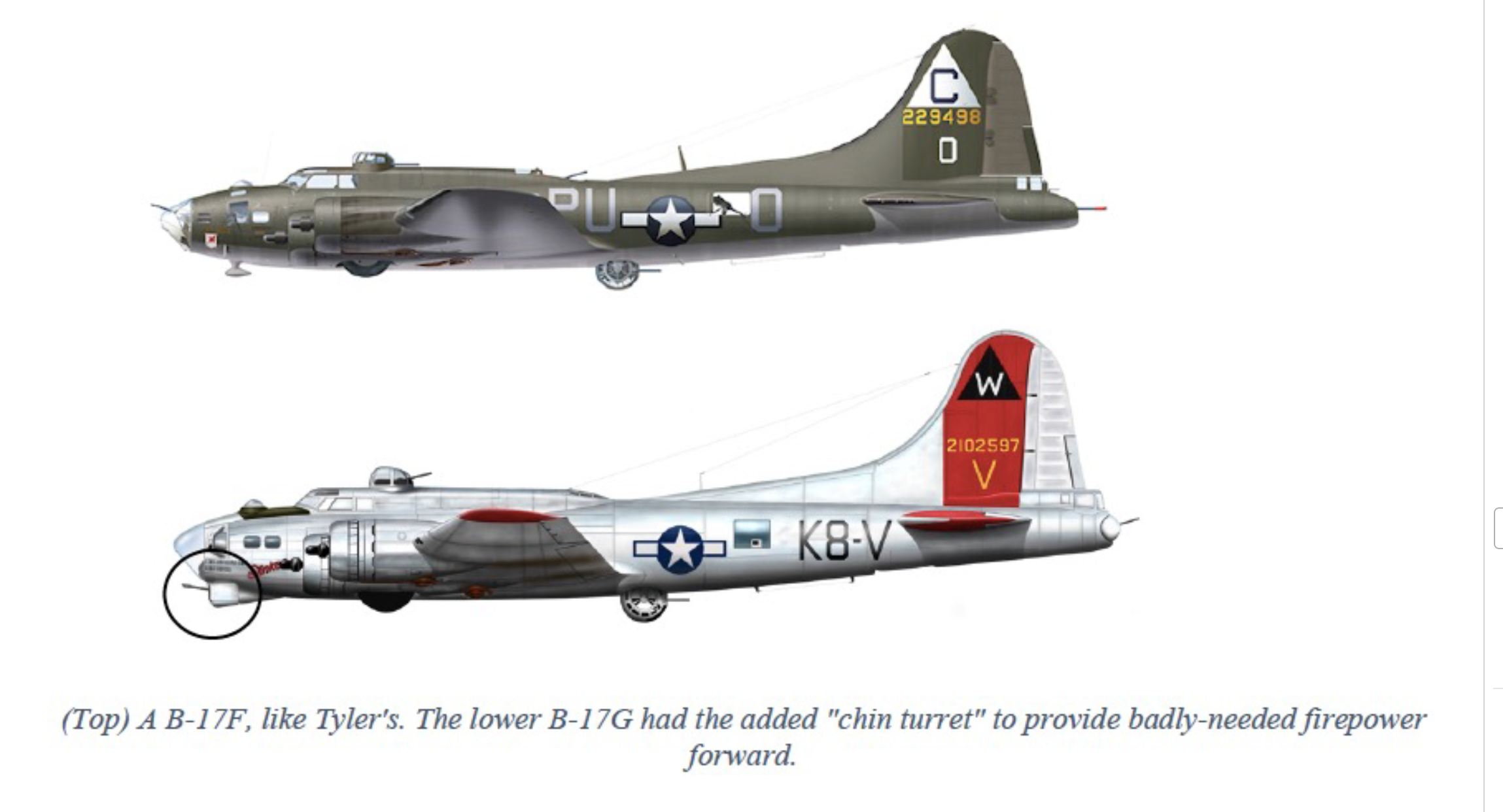 The B-17F’s weakness: Masters is set early on in the American air war, in 1943, and Ev Blakely and his fellow pilots flew the B-17F, a superb airplane with a fatal weakness: Only one machine gun in the plexiglas nose. So German fighter pilots learned quickly to attack B-17s head-on, and one of our county’s first air casualties, Clair Abbott Tyler, was a co-pilot killed in precisely this kind of attack, from a Focke-Wulf 190 that came out of the sun.