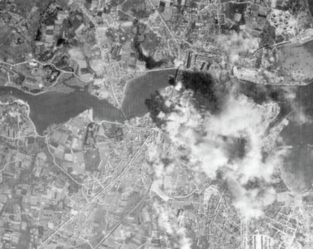 Clair Tyler was killed after an attack on the sub pens at Lorient, France. Below is a strike photo from his last mission and next to it are the sub pens. Today. They were indestructible—in fact, the Lorient pens were the base for French submarines four decades after World War II had ended.