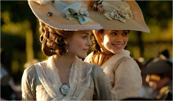 Georgiana consoles herself in drinking, partying, running up immense gambling debts (although she gained entry into British politics by shrewdly choosing her gambling partners at cards) and cavorting with the handsome MP Charles Grey. In one film scene, daughter she bears by Grey is taken from her to be raised with “his people,” and the exchange of the baby is done between two carriages on a remote country road. It is gut-wrenching.
