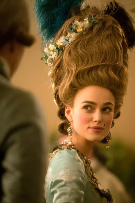 Leave it to me to wake up thinking about 18th-Century women’s wigs. A couple of weeks ago, Elizabeth and I watched again the film The Duchess, about Georgiana, the Duchess of Devonshire, the ancestral great-aunt of Princess Diana. Georgiana was played by Keira Knightley, she of the oddly beautiful underbite and delicate bone structure, and Knightley did her job well.