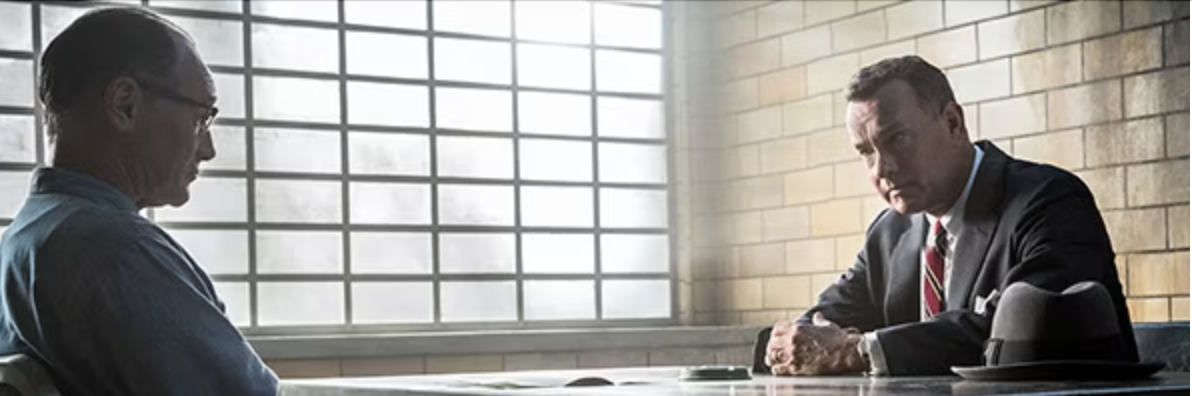 Bridge is an excellent movie on so many levels. The Spielberg-Hanks tandem is such a good fit. The script was written by the Coen Brothers (Fargo, Raising Arizona, O Brother Where Art Thou?) and the muted, faded colors, blues and grays, of Cold War East Berlin. Brooklyn is warmer, rich browns and ambers, deep red mahogany staircases,-autumnal colors and the colors subtl conveys the difference between dictatorships and democracies.