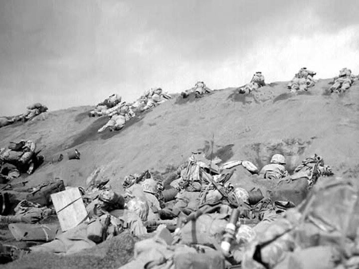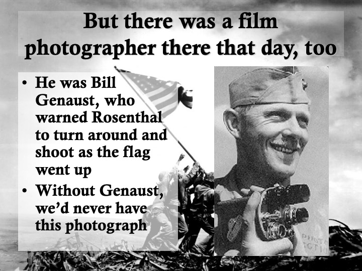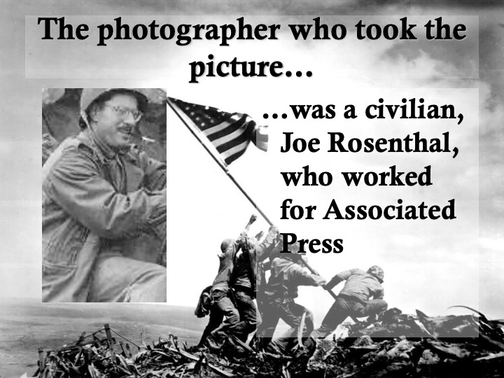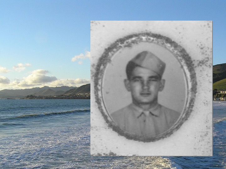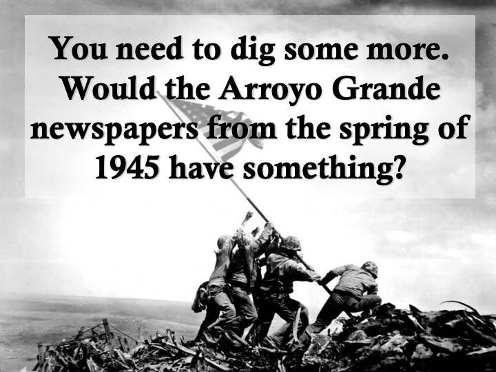 Today is February 23. On this day in 1945, a detail from the 28th Marine Regiment was immortalized in this Joe Rosenthal photograph as, still under fire, they raised a second, larger, flag atop Mt. Suribachi on Iwo Jima. The young Marine on the right had six days to live. He was a farmer’s son from Corbett Canyon, near Arroyo Grande. His parents were Azorean immigrants. And I knew, from the date on his tombstone, that he died on Iwo Jima.