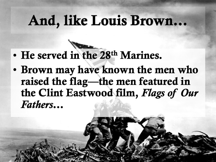Even that wasn’t enough, so, when I began to give talks on local World War II history, Louis Brown was part of them.