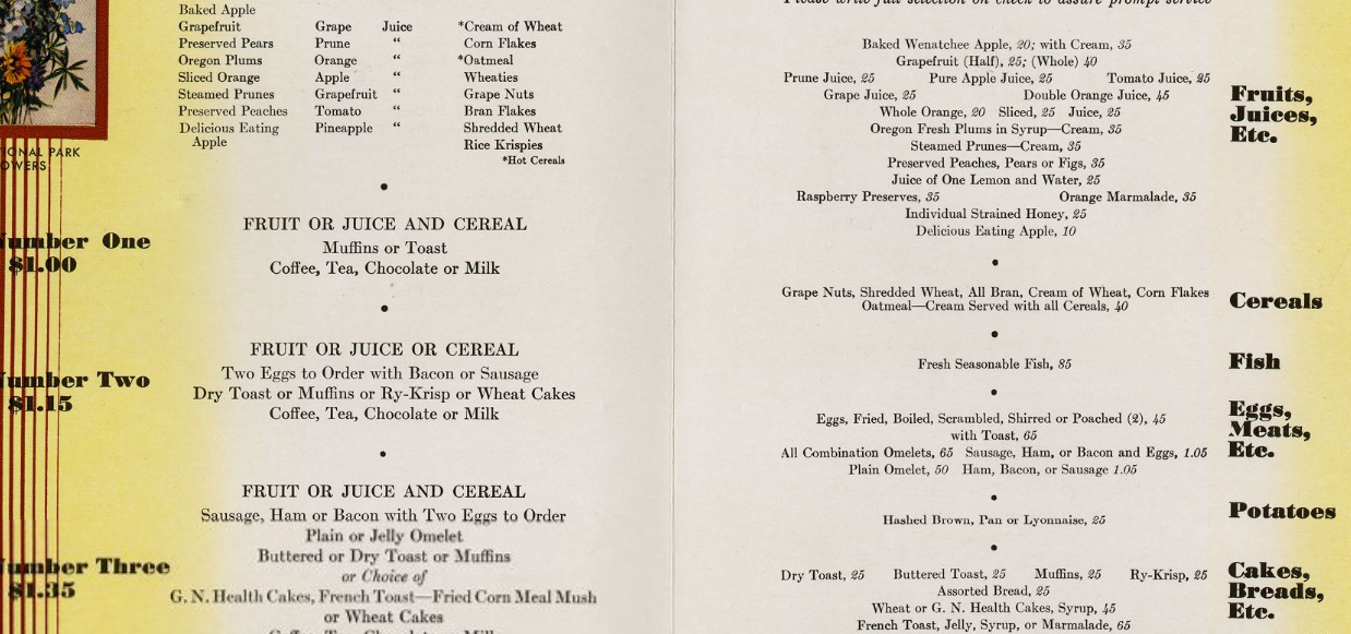 And oh, what a menu it was. Especially the breakfasts. As passengers headed all the way to Seattle (the route actually began in Chicago, so it was a forty-five hour trip that covered over 2,000 miles.) they needed a Breakfast of Substance.