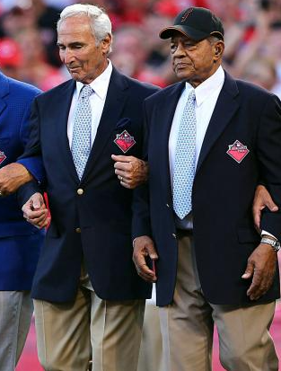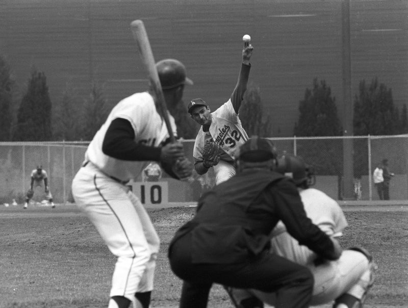 Two photos of rivals and friends, Sandy Koufax and Willie Mays.