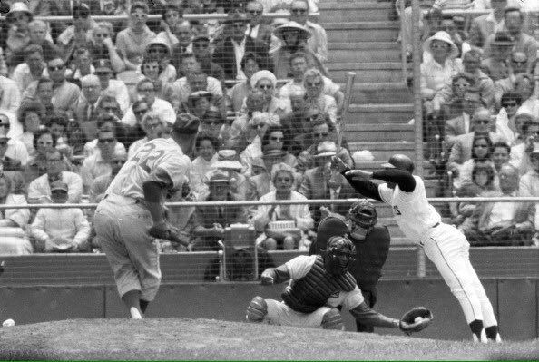 But this photo shows Dodgers pitcher Johnny Padres throwing a “message pitch” to…excuse me, AT… Mays at Candlestick in 1962.