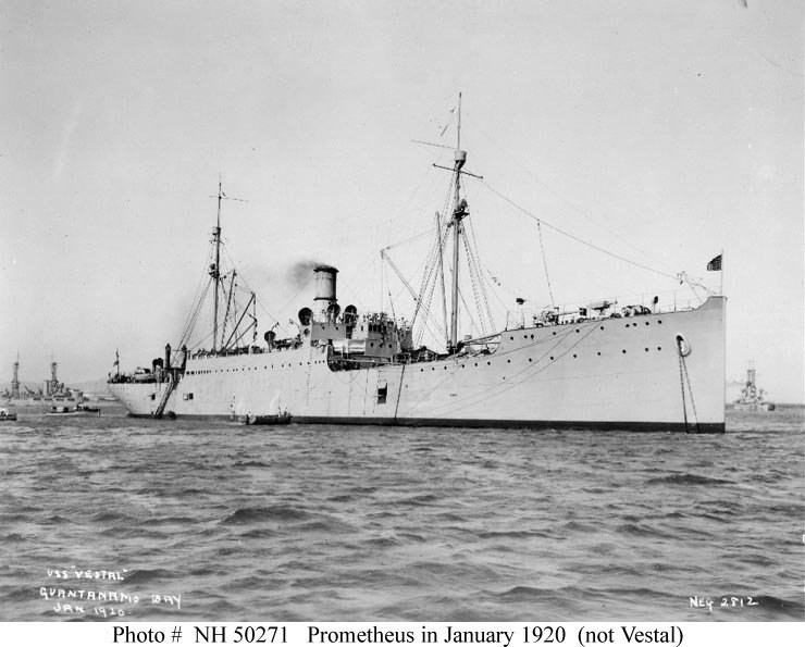 The ship that will call, USS Prometheus, was a repair ship. One of her sisters was USS Vestal.