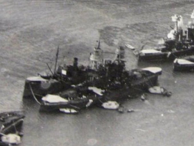 This is USS Vestal on December 7, 1941, just outboard of the battleship Arizona.