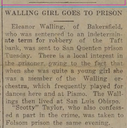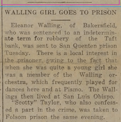 The bank in Taft that Eleanor robbed is today The Bank, a sports bar/restaurant. It was still a bank fifteen years after Eleanor fired a pistol shot into the ceiling. My dad was a teller there.