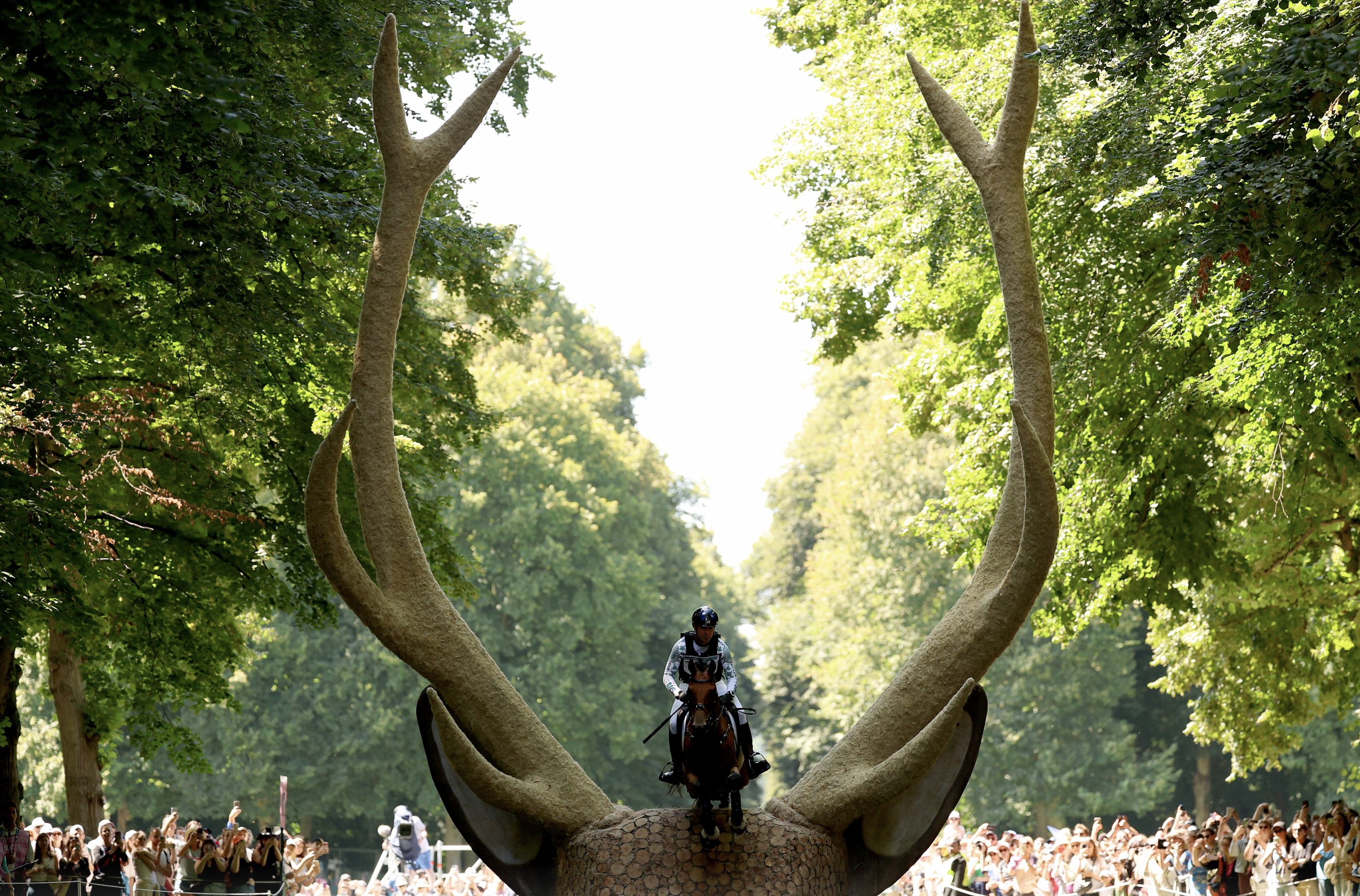 What a setting for a memorable event in the 2024 Paris Olympics: Day Two in the equestrian competition along a cross-country course laid out in Louis XIV’s Versailles.