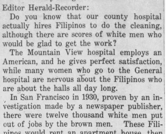 A view of Filipino immigrants from the Arroyo Grande Herald-Recorder, March 1934: