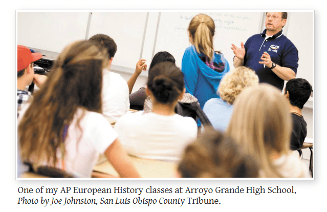 In Lucia Mar, at AGHS, I taught Advanced Placement European teacher, and there was at least one colleague who couldn’t resist needling me for teaching “easy” kids. (I only got the job because the previous AP teacher, a little soft on Hitler for my taste, resigned to take a higher-paying job in another high school.)