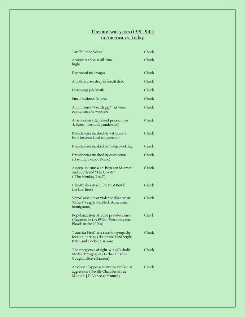 The Interwar Years v. Today 14 Friday Feb 2025 Posted by ag1970 in Uncategorized ≈ Leave a comment Share this: Share on X (Opens in new window) X Share on Facebook (Opens in new window) Facebook Like Loading... Related