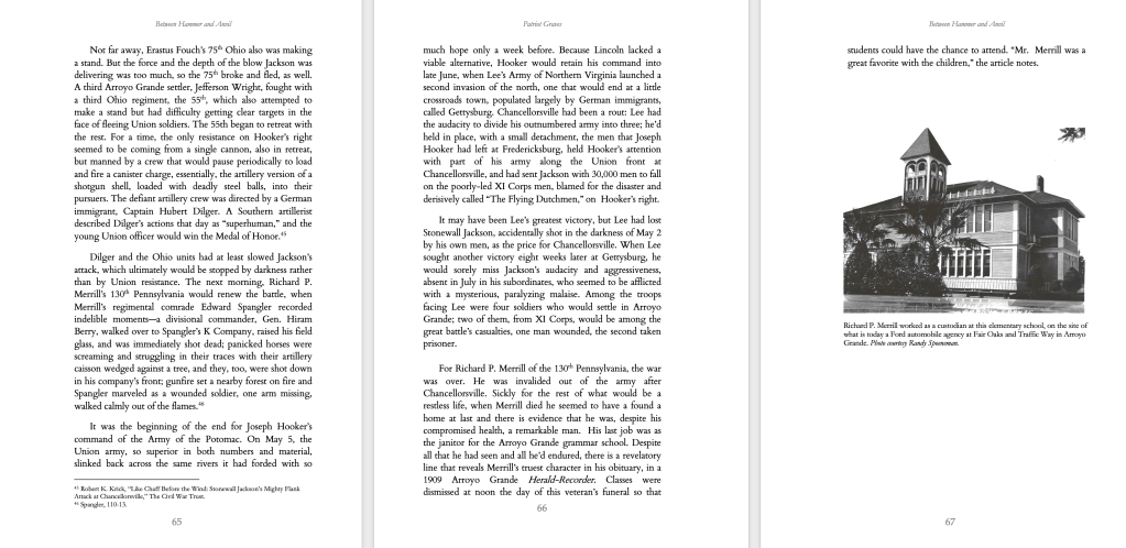 “The animals were followed by 30,000 Confederates…” 30 Wednesday Apr 2025 Posted by ag1970 in American History, History ≈ Leave a comment On May 1, 1863, three future Arroyo Grande settlers were involved in one of the most electric moments of the Civil War. Here’s how I described it in this book. Share this: Share on X (Opens in new window) X Share on Facebook (Opens in new window) Facebook Like Loading... Related
