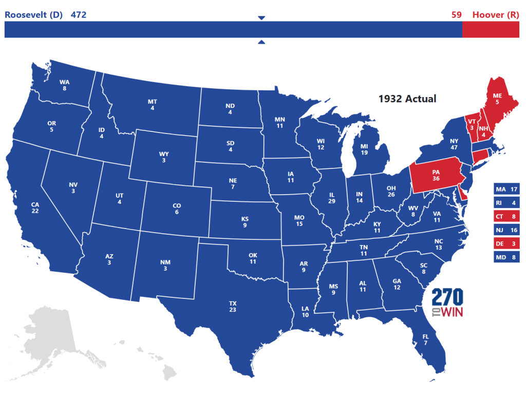 To refresh your memory, Hoover accomplished this in the 1932 presidential election (in red).