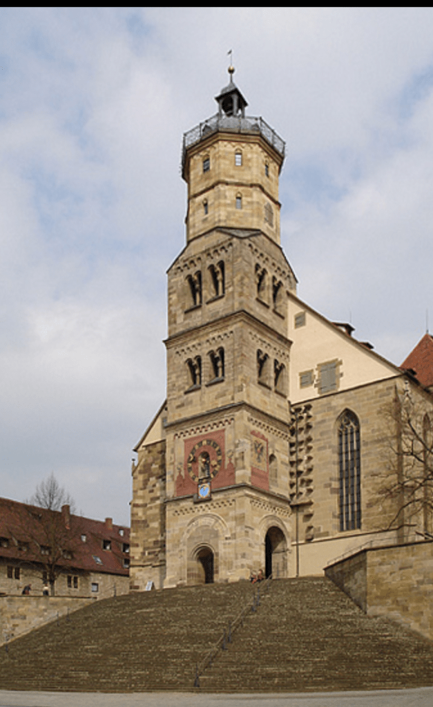 Baden-Wurttemberg, where the bomb plotter and a California gold chlorider (my Grandma Kelly’s father, Michael, who worked in a gold-processing mine and mill now beneath Lake Shasta) is stunningly beautiful.. On the left is the town where the Kirchers lived, until the 1830s; on the right is the Evangelical Lutheran church were Michen, my third great-grandfather, was baptized.