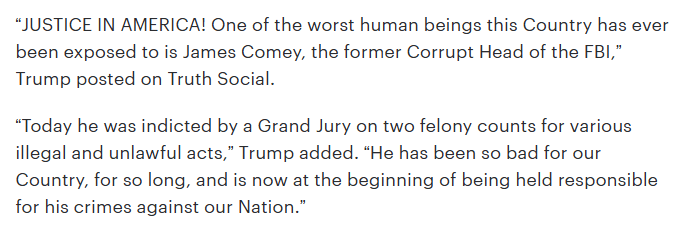 Given today’s headlines, I remembered again Doris Kearns Goodwin’s superb Pulitzer-Prize winning book, Team of Rivals. James Comey, Lincolneque in height, anyway, was indicted today on charges that, it’s reported, DOJ litigators have maintained, that will never stand in court. But that’s how the president deals with critics and enemies: He sues them to death.