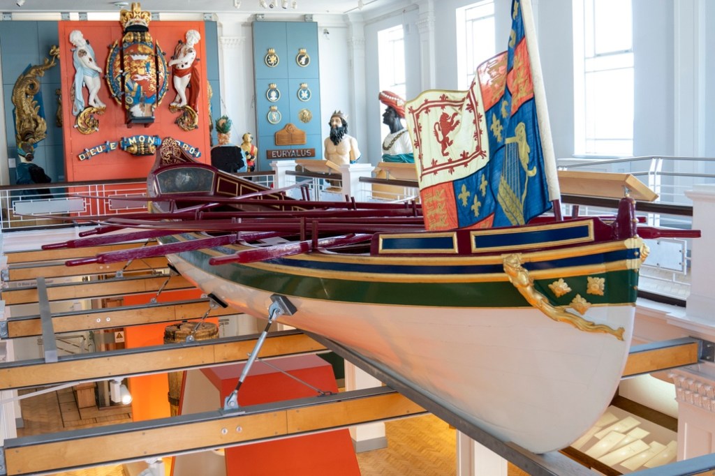 A collector peers through the telescope Nelson used at Trafalgar in 1805.