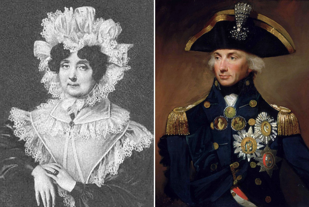 –He was the son of an Anglican minister and was properly married to a widow, Frances Nisbet, in 1787. Six years later, on a visit to Sir William Hamilton, the British ambassador to Naples, he first caught sight of Sir William’s wife, Emma. It was all over after that. The two marrieds entered into a lively relationship that was analogous perhaps only to the Richard Burton/Elizabeth Taylor scandal that began during the filming of Cleopatra. While Nelson continued to support his wife—she remained “devoted” to him, it’s said—Nelson’s devotion lay forever after in the charming arms of Emma. The relationship produced a daughter, tragically named Horatia.