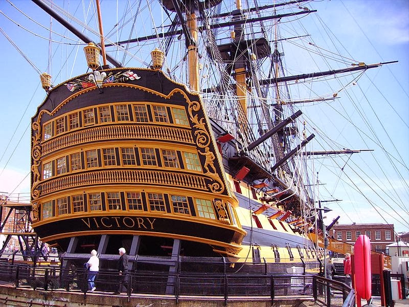 –To be truthful, Nelson got himself shot. He gloried, as George Custer did, in elaborate uniforms and was wearing all his medals (not quite so many as a North Korean general, to be sure) as Victory went into battle, including the diamond-encrusted cockade presented him by the Sultan of Turkey in 1798. This replica (the original was stolen years ago) shows what it looked like. All those medals and foofery made him an easy target for an ambitious sniper.