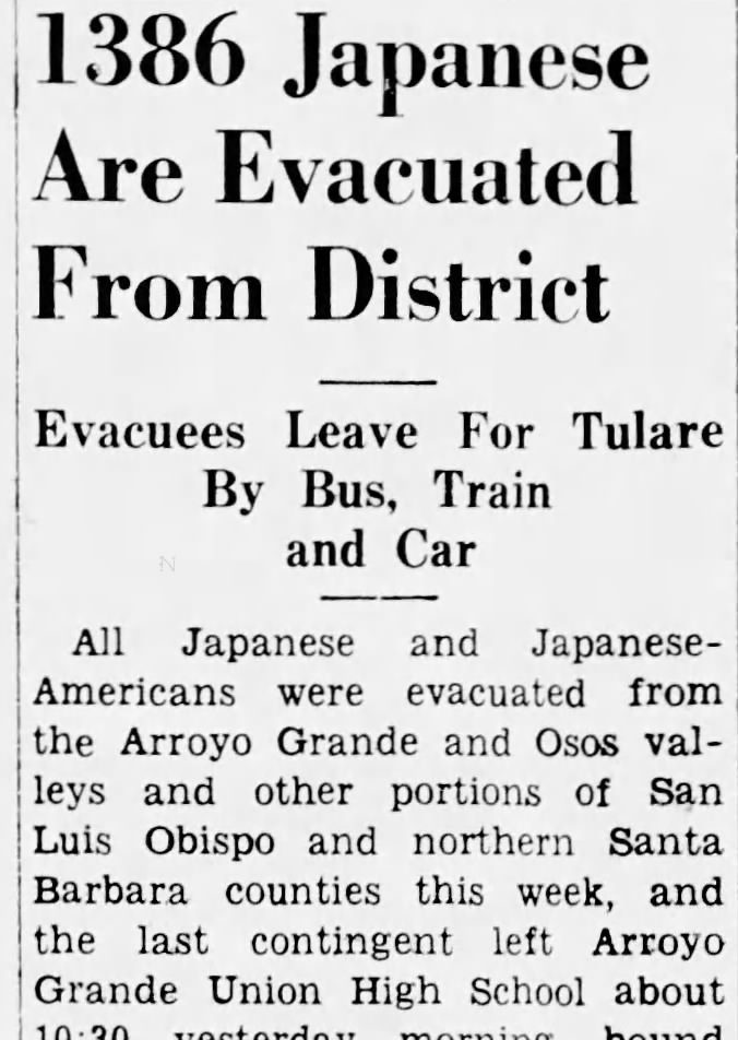 Historians theorize that these runaway Japanese successes, and FDR’s fondness for his new friend, played a key role in the president’s decision to issue Executive Order 9066, which was enforced here, in Arroyo Grande, 2400 miles from Pearl Harbor, 2800 miles from Washington DC and 5400 miles from London.