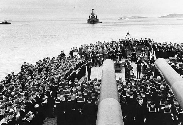 Three months later, it was appropriate that another battleship, HMS Duke of York ( engaging a German battleship, Scharnhorst, in the 1943 photo below) brought Churchill to America.