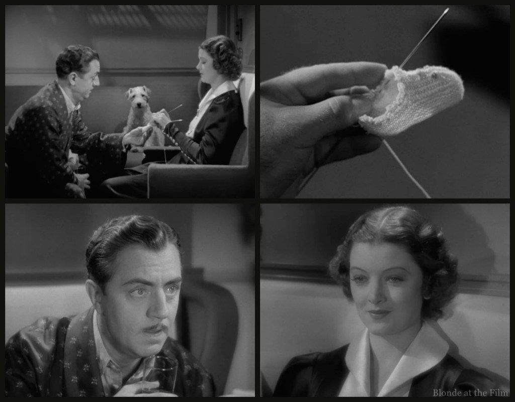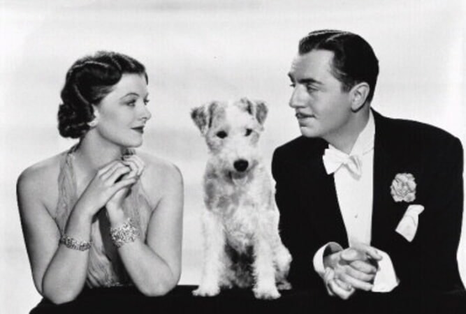 Above: Nora (Myrna Loy) can’t sleep, so Nick (William Powell fixes her scrambled eggs; the couple with their dog, Asta; Loy, Jean Harlow–