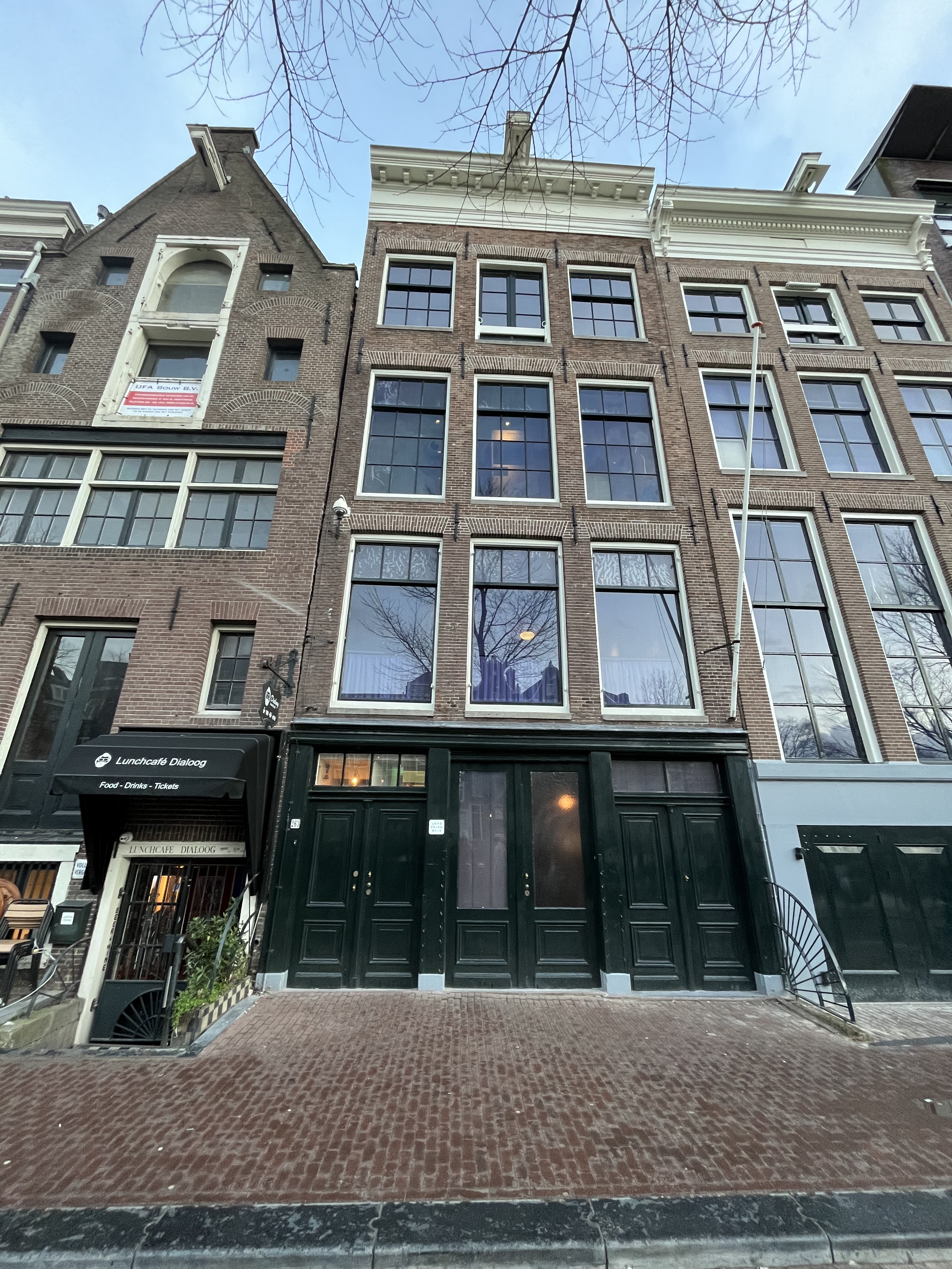 The statue, Venice High School; Loy as a very young actor; the Frank home, Amsterdam.