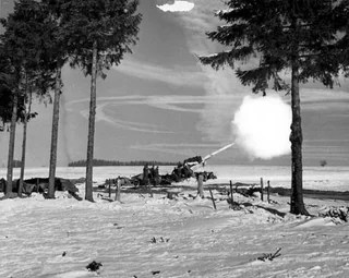 The 965th provided fire support at the town of St. Vith for the 7th Armored Division and the 106th Infantry Division. Their fire and the resistance of the two divisions stalled the German attack at its onset, which later took its toll as German tanks and trucks began to run out of fuel—by now, Berlin taxis were running on firewood. Oil had never been a German resource, which led to HItler’s Russian debacle. This was his Western Front disaster.
