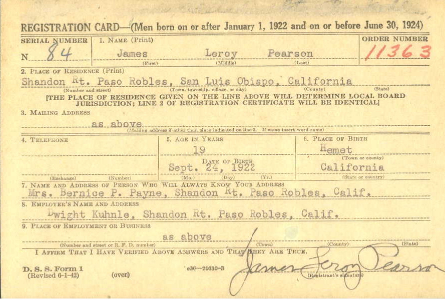 James Pearson, Paso Robles, 455th Bomb Squadron, 323rd Bomb Group