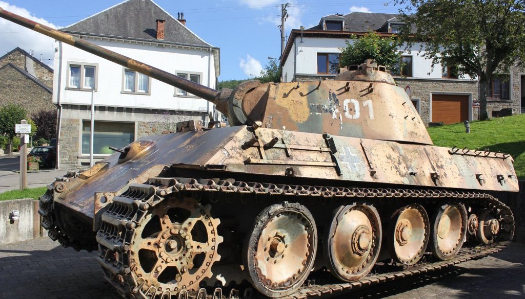 (Above: Houffalize, Belgium; a German Panther tank in the town center suggest this town’s importance in the Battle of the Bulge.